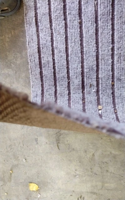 Very pleased with the rug. Despite the fact that it lies outside in my yard, dirt does not stick to it. It becomes very pleasant and warm on the feet. The base is rubber?, doesn't slip. Not very dense, but I like it. I recommend.