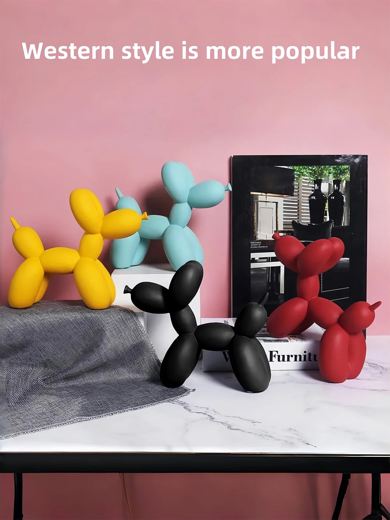 1pc Handmade resin balloon dog Statue ornament - Cute white animal sculptures for home decoration and Valentine's Day gifts, bir