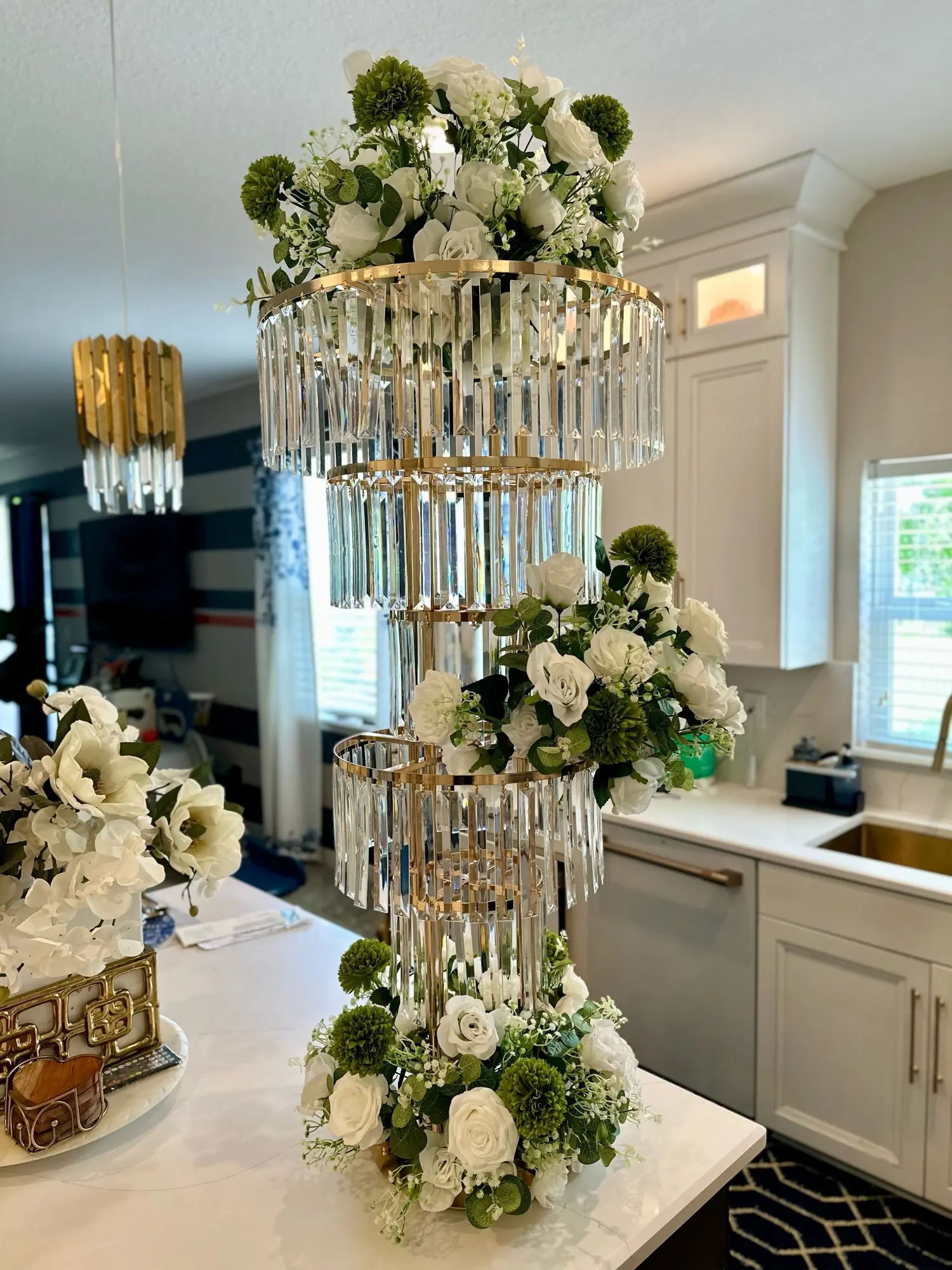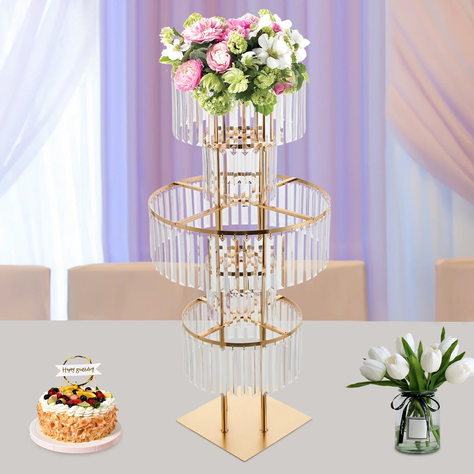 Gold 5 Tier Wedding Crystal Flower Rack Centerpieces Flower Stand Wedding Party Backdrop Stand Freestanding Floral Holder